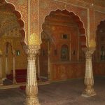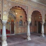 Our next stop was in Bikaner at another haveli (heritage property hotel – restored landmark). While waiting for our second room to be ready, we went out on the roof and enjoyed the spectacle of a highly colourful, brightly lit “Bollywood” style wedding reception across the street. Since the large dining room in our hotel “under the stars” was set up for a wedding reception on the next night, the four of us decided to order dinner in our room. I had a chance to try the “thali” – a specialty of the house which is sort of a smorgasbord on a big metal plate. I had the “super deluxe” and, as all of the food so far, it was superb ($8). The main attraction in Bikaner is the Junagarh Fort, which contains several superbly restored palaces. Since we arrived later than planned, we had a whirlwind tour of this attraction followed by a visit to a camel research centre, thereby having a good introduction to our new animal friends, two nights later.