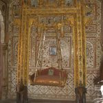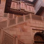 You’d think that one would get tired of forts and temples and mosques (oh my!), but each one we’ve seen has its own character, its own treasures and its own fascinating history. The Mehrangarh fort in Jodhpur was our next stop; it was the biggest and architecturally most astounding, with superb collections of earlier century conveyances, weaponry and miniature painting. Set in the hills above Jodhpur, its precincts cover many square miles, surrounded by a city wall, many miles in length and up to 40 metres high in places. Our hotel was another impressive heritage building, but unlike the previous ones, the staffing was at times lackadaisical. Due to road construction, we had to walk several blocks in the dark through rubble, mud and various sizes and consistencies of animal poop to get to it. You gotta love those porters though, who happily schlepped our luggage through the muck to earn their 100 rupee tip. Dinner that night was a huge amount of leftovers from our excellent lunch in town. Although the hotel restaurant was supposed to be open until 10, no one could be found, so we borrowed some forks, ordered some beer at the desk and tore into the containers of leftovers.