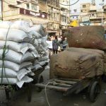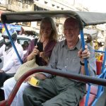 Having experienced this high excitement for an hour, our guide wisely changed our mode of transportation to the ubiquitous bicycle rickshaws. This provided a whole new level of excitement for us as we now had a rickshaw’s eye view of life on the moving streets. In Shanghai and other S.E. Asian cities I’ve seen the chaos of urban traffic where motor vehicles mix with self propelled vehicles, but nothing like this. Since my own god seemed to be ignoring my fearful prayers, I tried Vishnu, Ganesh and a few other Hindu deities, but after a while, I began to revere the finely honed skills of the rickshaw driver who guided, aimed and careened within fractions of inches of the aforementioned vehicles whether they were on the right side, the left side or coming straight at you. In real congestion, the rickshaw is king, usually arriving at the destination first.