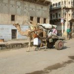 Our next city was Pushkar (not a portent of a van breakdown). I made this little joke with our driver Raj and he giggled for a half hour. (On occasion, it’s nice to know that someone enjoys my sense of humour.) Although we had another nice hotel out in the countryside, the city of Pushkar reminded me of the temple before Christ came in and cleaned things up. It consists of a long curving street leading to India’s most prominent temple to the Hindu creator-god Brahma. The street was very colourful with hundreds of stores and the most virulent hucksters we had yet encountered. However, having our first exposure to the ghat phenomenon made our visit most worthwhile. At several points along the street, there is access to India’s second largest accumulation of sacred ghats (ceremonial water-side steps or ramps), on Pushkar Lake. Ralph indulged in a Hindu ceremony of blessing and emerged with a lovely orange dot between his eyes and somewhat fewer rupees in his wallet. Connie and I took some photos from a distance and got yelled at – in the process noting that photography of sacred places was not appreciated. All in all though, if I were asked to provide a superlative to describe Pushkar, I’d have to say, India’s greatest ………tourist trap.