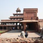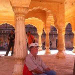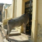 After breakfast, we went for a short walk on the streets of the old town near the hotel. Take the chaos of Delhi streets, add lots of animals and………well, you get the idea. An adolescent bull suddenly decided to mount a cow, who didn’t share his “amour”. The cow bolted directly at Caroline, knocking her on her backside – all of this in the middle of a busy street! Happily our resident nurse (Caroline) has a good sense of humour (not to mention a yoga-steeled body) and all that was lost was a very small patch of elbow skin.