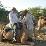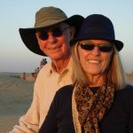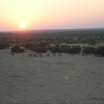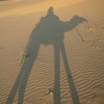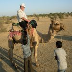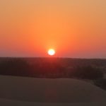 Ralph and Caroline wrote this entry to share their separate experience: We sat in the front of the camel cart with our feet hanging over and were impressed by the power of the camel tail that hit Ralph’s foot (ouch!) We became fast friends with our cattle cart colleagues from Seattle and Washington DC. We had to disembark the cattle carts to walk up the dunes. The 3 camel carts made three communities in the dunes. There were metal frame cots and very heavy quilts and blankets that kept us toasty in the clear, clean, fresh, dark night air. The sky was black with a bright moon and a few stars. Having gone to sleep at 9:30pm, we awakened at 1 AM. It was a spectacular sight of the surrounding dunes and sleeping camels. The moon was so bright I could almost read my book. We had potty needs and 100 square kilometres to pee in, but we were told that if you go too far, you might find yourself in Pakistan! Less attractive waking at three AM was the cold breeze that required a hat, not to mention developing a sore back from the camel ride. The next thing we knew it was 6:30 with a horizon of pinks and oranges, which intensified over an hour until the flaming orb arose.