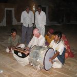 The Jaisalmer fort is one of two remaining in India in which people actually live. It contains great markets and fascinating temples including a 14th century Jain temple and a Hindu temple, where we suddenly found ourselves in a service – sort of a Hindu flash mob (see video). We also had a good day of shopping, finding a number of Christmas presents (but I can’t tell you about those…….yet). In the late afternoon, we left for Khuri, the embarking point for our camel safari. This is a huge commercial venture providing many individual companies offering camel trips. Our company had a central compound with courtyard and huts (some thatched) on the perimeter. We mounted our camels with the help of our “drivers” who then led us out into the desert for an hour walk to a destination at the top of some sand dunes to watch the sunset. I soon found that spreading ones thighs the width of a camel hump is not the way I want to remember life, so after 15 minutes, I asked to dismount and walk. The discomfort was just a little too much for this aging choral conductor. The others trotted ahead up the dunes (some unattached from their “drivers”), while my 18(ish) year old driver, Manuel, and I walked with my new love “Lallya” at our side. We sat down in the dunes and had a delightful conversation, made all the more remarkable considering his English was non existent and my Rajasthani, even less so. I drew a map of the world in the sand showing where Victoria and India was; we made a video of meanderings of a sand beetle and used my mini digital recorder to record, then play back desert sounds. He was a delightful fellow who made up for the heartbreaking shattering of my earlier dreams of a career in camel polo. (This sport actually exists!)