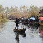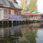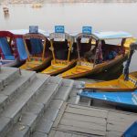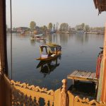 We arrived in the Valley of Kashmir at the shore of Dal Lake, which has rows of sikaras – colourful long thin paddled boats with canopies, designed to transport people to the thousands of houseboats clustered around the lake. The sikaras are clearly designed for luxury, as they have two reclining cushioned seats, room for 2 more on bench seats and seats at either end for the boat operator and servant.