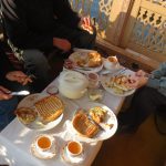 About 10:30, we were ushered into a small room with cushions to sit on, and beer and curry were served to the four of us, three members of the Dandoo family (owners), plus our new Swedish & Irish friends. The curry was delicious, the beer intoxicating and the new friends most enjoyable. It was like a return to my traveling days of the 60s, when new friends were made by the hour and travel plans changed daily, not to mention sitting around in small rooms on cushions, drinking beer and eating great ethnic (albeit European) food. (How many septuagenarians do you know who still do this?).
