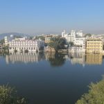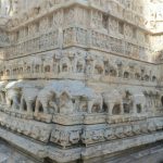The 5 hour drive to Udaipur goes through relatively arid farmland, the predictability of which is broken up by villages, any one of which would attract major tourism if it were plunked down somewhere in North America. Every one has its own “riot” of colour, from the fruit stands, to hanging clothing and everywhere the beautiful saris. And the cows………always the cows! Our lunch stop was the most grandiose and detailed structure I’ve seen anywhere in the world was the Jain temple at Ranakpur. It has 40 separate rooms and 1444 pillars, all uniquely carved and the whole structure is white marble. Beyond this wonder, the surroundings changed to winding mountain roads and a most delightful rural countryside all the way to