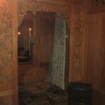Paddling across the lake took about 10 minutes and we arrived at our houseboat, a huge affair (more than 100 feet long and 20 feet wide with living room dining room and 3 en-suite bedrooms). We were greeted by 2 servants in uniform, although this seemed to be for show, since we only saw one of them after that. Sitting on cushioned seats on the front porch and drinking Kashmiri tea, we reveled in the beauty and serenity of the lake before being shown to our bedrooms which, like the living and dining rooms are are lavishly appointed with heavy, ornate, plush walnut furniture from a grander era. As you can see from the photos, the rugs, curtains and just about all of the wood are decorated – the wood in particular in great detail of geometric designs, which are apparently hand-carved. We stayed in an older houseboat for the first night, moving to a more elaborate one for the next two nights.