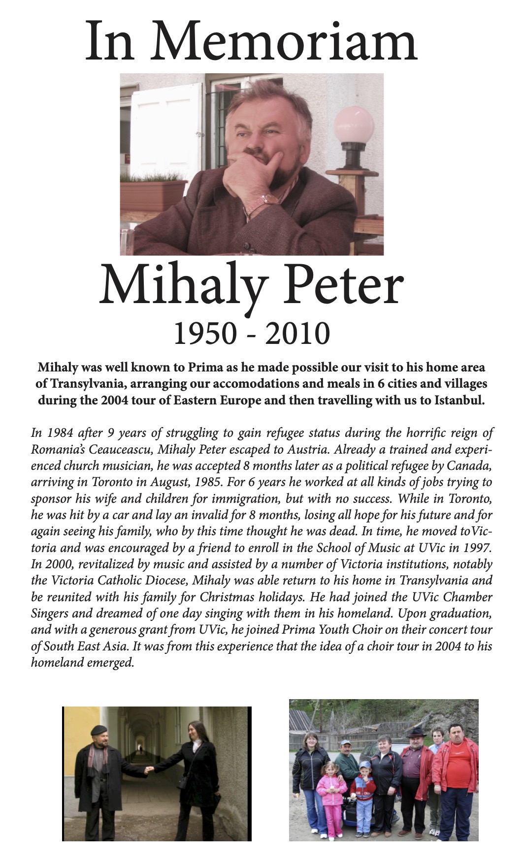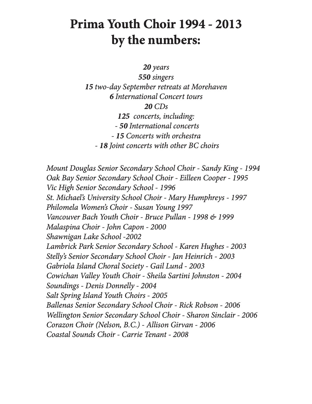 VCO & Reviews, Prima by the numbers, Map of Tours, In Memoriam